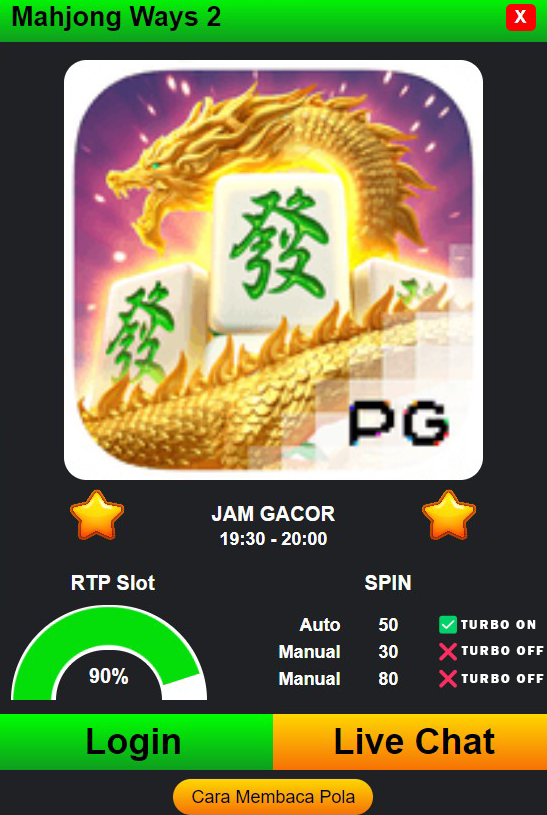 Pola ini adalah pola rekomendasi yang disediakan Gunung303 untuk member setia Gunung303 yang bingung saat hendak bermain. Namun, untuk kemenangan terbesar kembali kepada skill & keberuntungan masing-masing player. Player Gunung303 juga bisa menggunakan pola bermain sendiri jika mempunyai pola yang dirasa lebih baik dari pola yang disediakan.